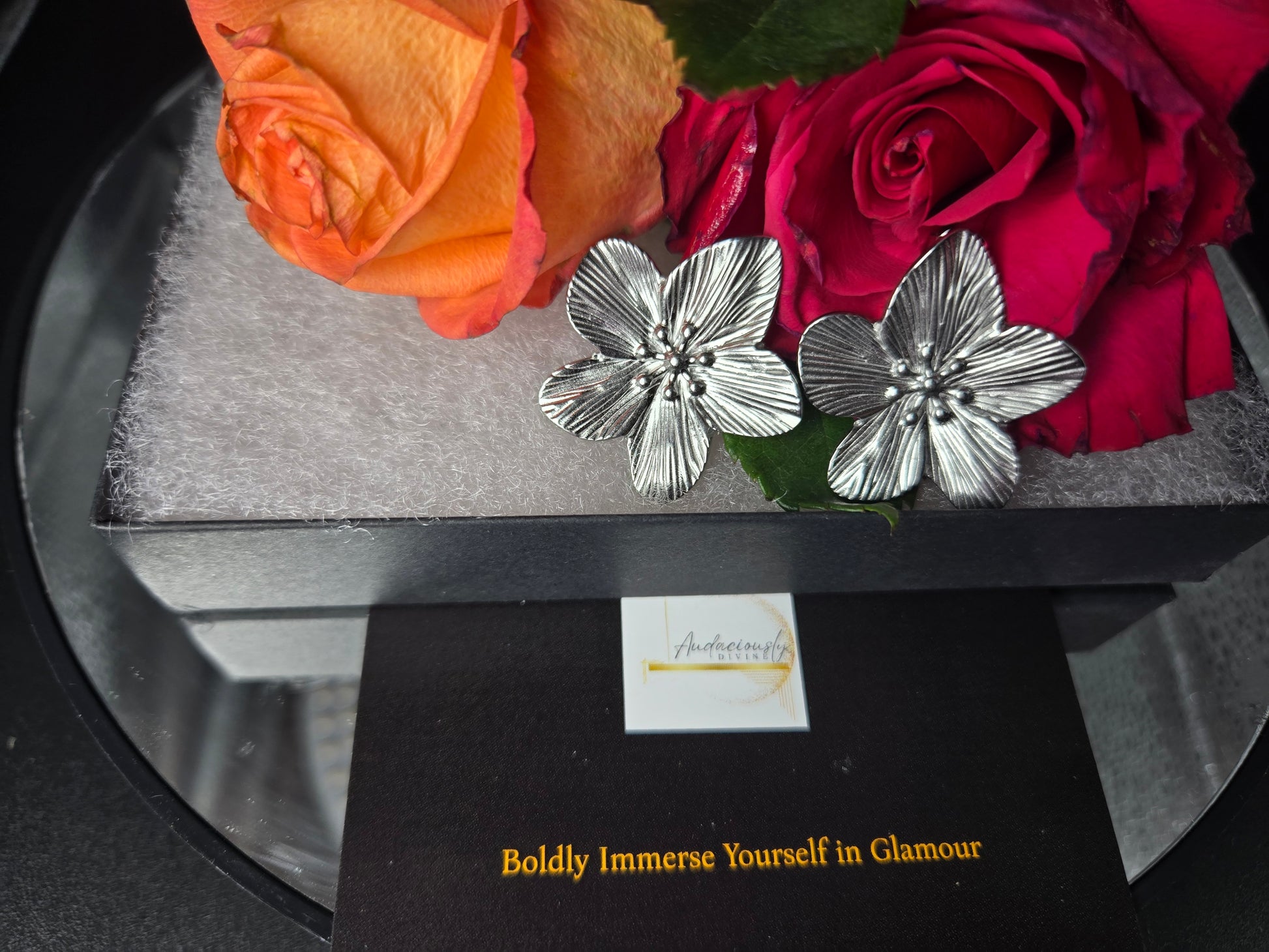 Delicate five-petal flower studs that whisper elegance while making a bold statement. Crafted from stainless steel, these dainty blooms are intentionally different—subtle yet striking. Available in both gold and silver, they're the perfect finishing touch for any dress, from casual to formal. Feminine, modern, and undeniably cute, these geometric florals bring an effortless sophistication to your everyday look.